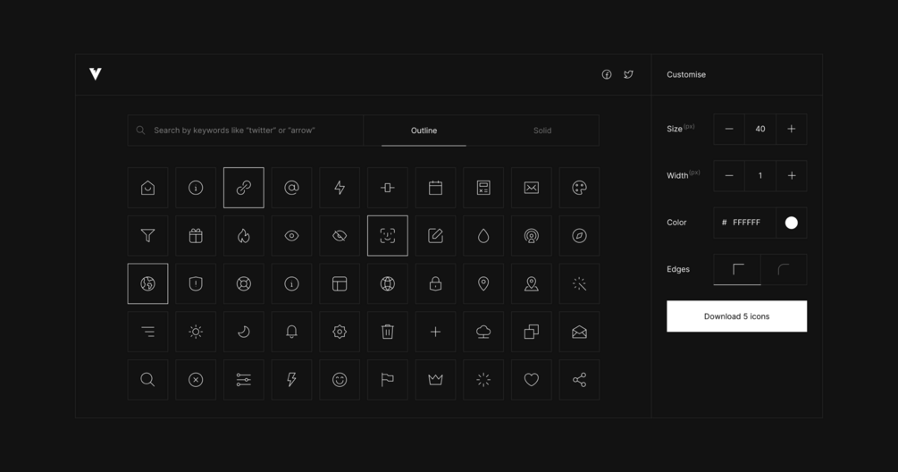 Save hours of design with 1000+ SVG icons to kickstart unlimited projects. Customise and download in outline and solid styles.